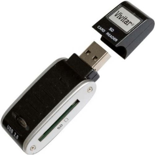 O leitor de cartão de memória universal Vivitar "50 in 1" VIVRW5000 permite transferir arquivos do cartão de memória para o computador através da porta USB. Compatível com os seguintes cartões de memória:
